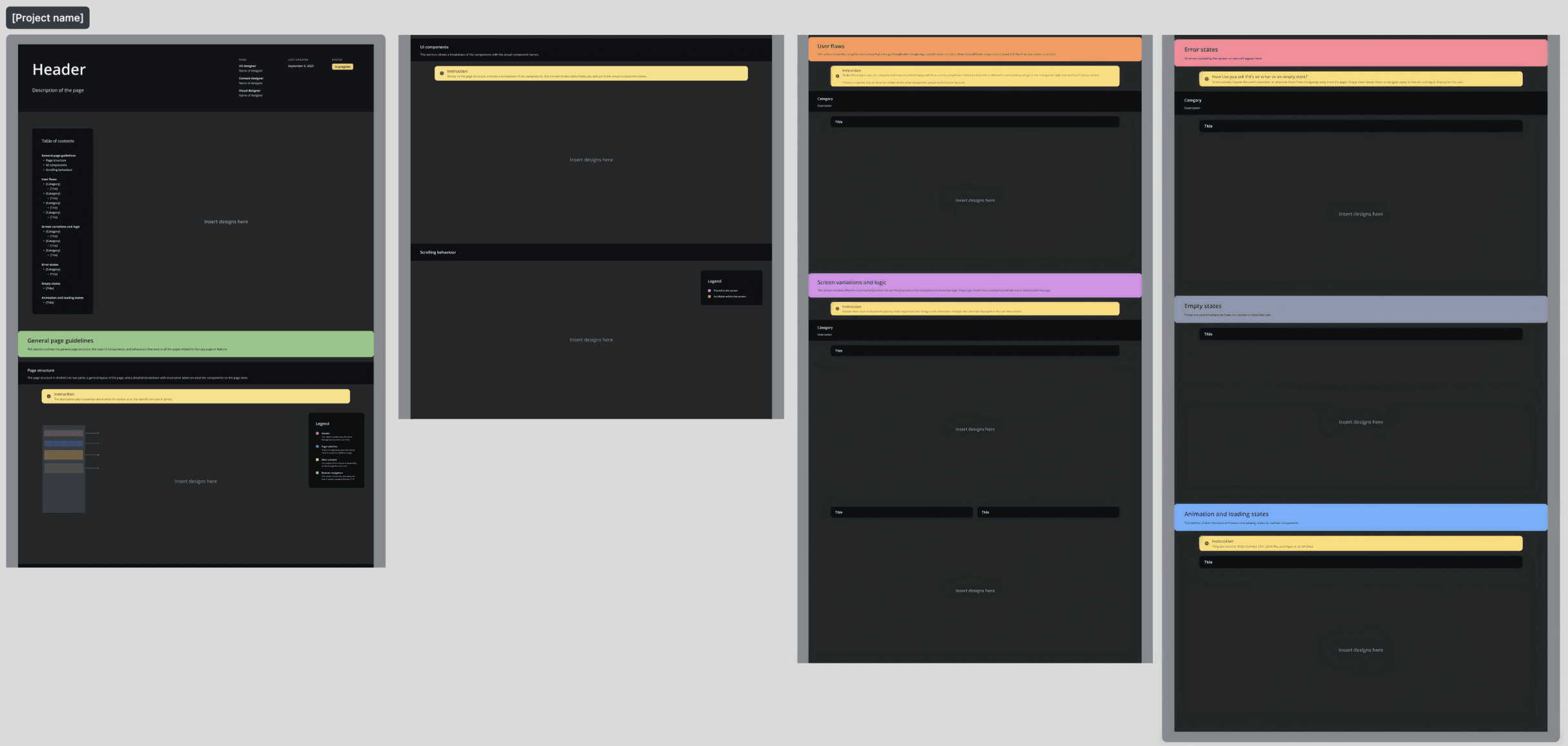 I created 2 different sets of rules — one for anyone accessing the library (i.e developers, product managers, and UX designers), and one specifically for UX designers. The general library rules discuss how the library functions, and the rules for designers walk through the steps for building a new page & maintaining/updating the existing pages.